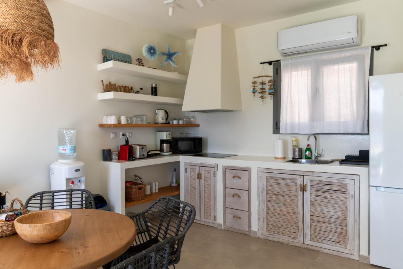 Two-Bedroom Villa. The pool with a view is a top feature of this villa. Boasting a private entrance, this air-conditioned villa comes with 1 living room, 2 separate bedrooms and 1 bathroom with a shower and a hairdryer. The kitchen features a stovetop, a refrigerator and a toaster. This villa has a tea and coffee maker, flat-screen TV with streaming services, sea views, as well as winechampagne for guests. The unit has 4 beds.