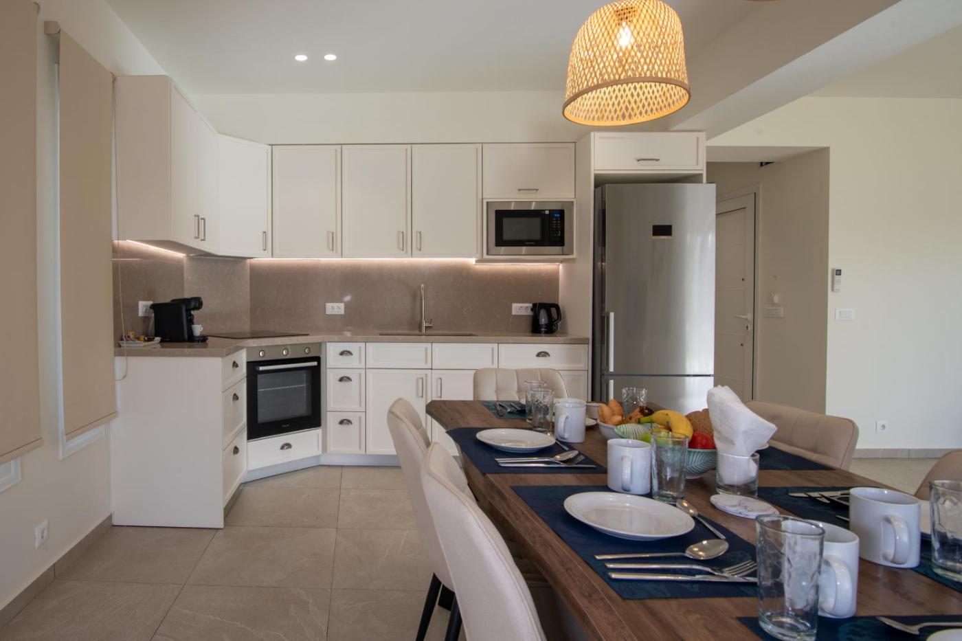Deluxe Villa. Boasting a private entrance, this air-conditioned villa features 1 living room, 3 separate bedrooms and 3 bathrooms with a shower and a hairdryer. In the well-fitted kitchen, guests will find a stovetop, a refrigerator, kitchenware and an oven. Featuring a terrace with sea views, this villa also features a washing machine and a flat-screen TV. The unit has 6 beds.