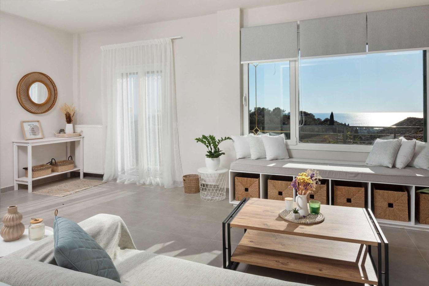 Three-Bedroom House. Featuring a private entrance, this air-conditioned holiday home consists of 1 living room, 3 separate bedrooms and 2 bathrooms with a walk-in shower and a hairdryer. Guests can make meals in the kitchen that is equipped with a stovetop, a refrigerator, kitchenware and an oven. Boasting a terrace with sea views, this holiday home also provides a washing machine and a flat-screen TV with streaming services. The unit offers 4 beds.
