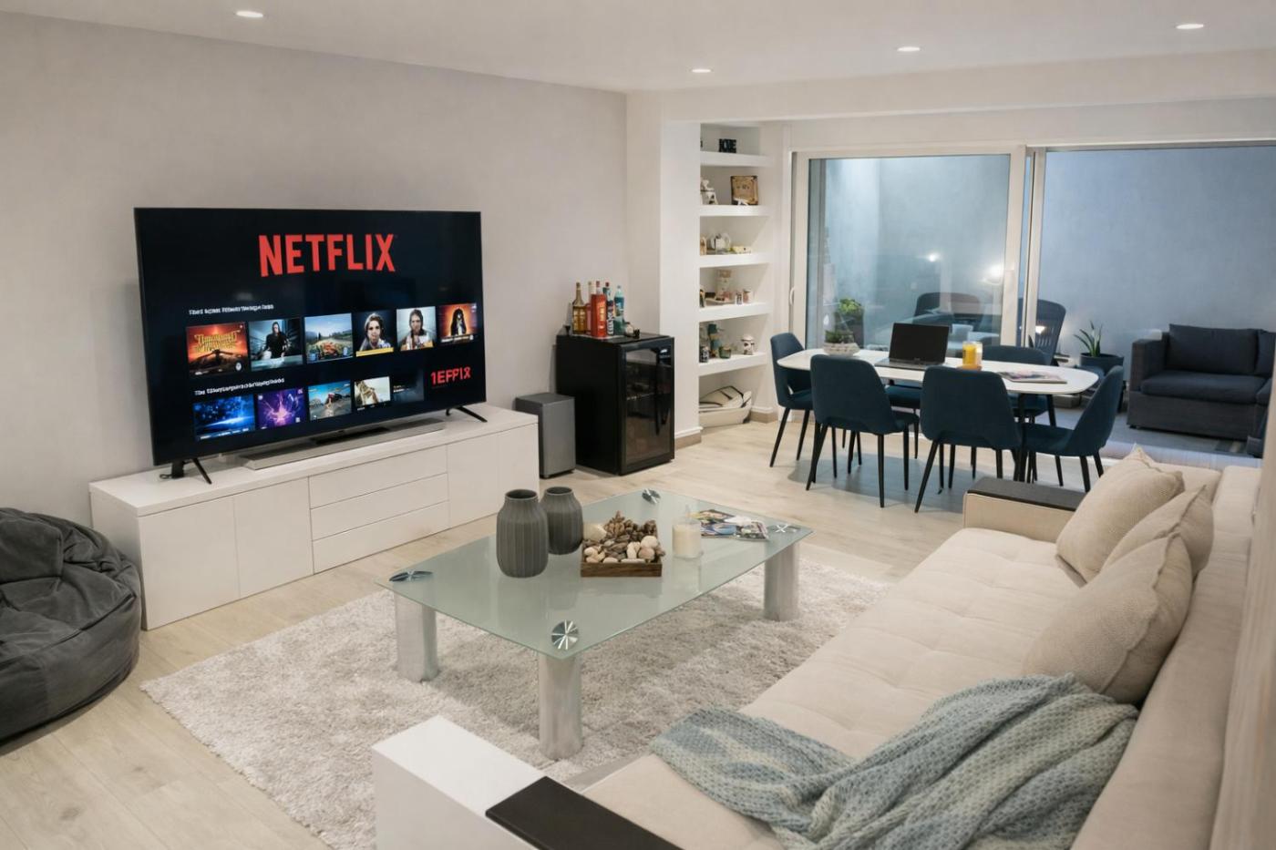 Three-Bedroom Apartment. The hot tub is a top feature of this apartment. In the fully equipped kitchen, guests will find a stovetop, a refrigerator, a dishwasher and kitchenware. The spacious air-conditioned apartment features a flat-screen TV, a washing machine, a minibar, a tea and coffee maker as well as garden views. The unit has 3 beds.