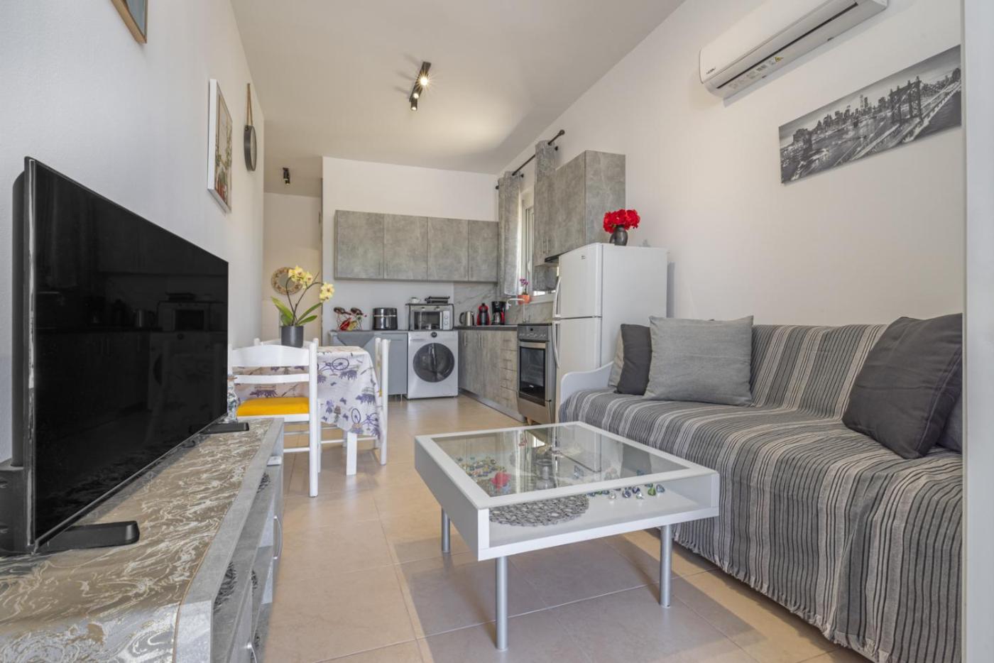 Two-Bedroom Apartment with Terrace. Featuring a private entrance, this spacious apartment also comprises 2 bedrooms, a seating area and 1 bathroom with a walk-in shower and a hairdryer. Guests will find a stovetop, a refrigerator, kitchenware and an oven in the fully equipped kitchen. The apartment also provides guests with a barbecue. The air-conditioned apartment provides a flat-screen TV with streaming services, a washing machine, soundproof walls, a tea and coffee maker as well as garden views. The unit offers 3 beds.