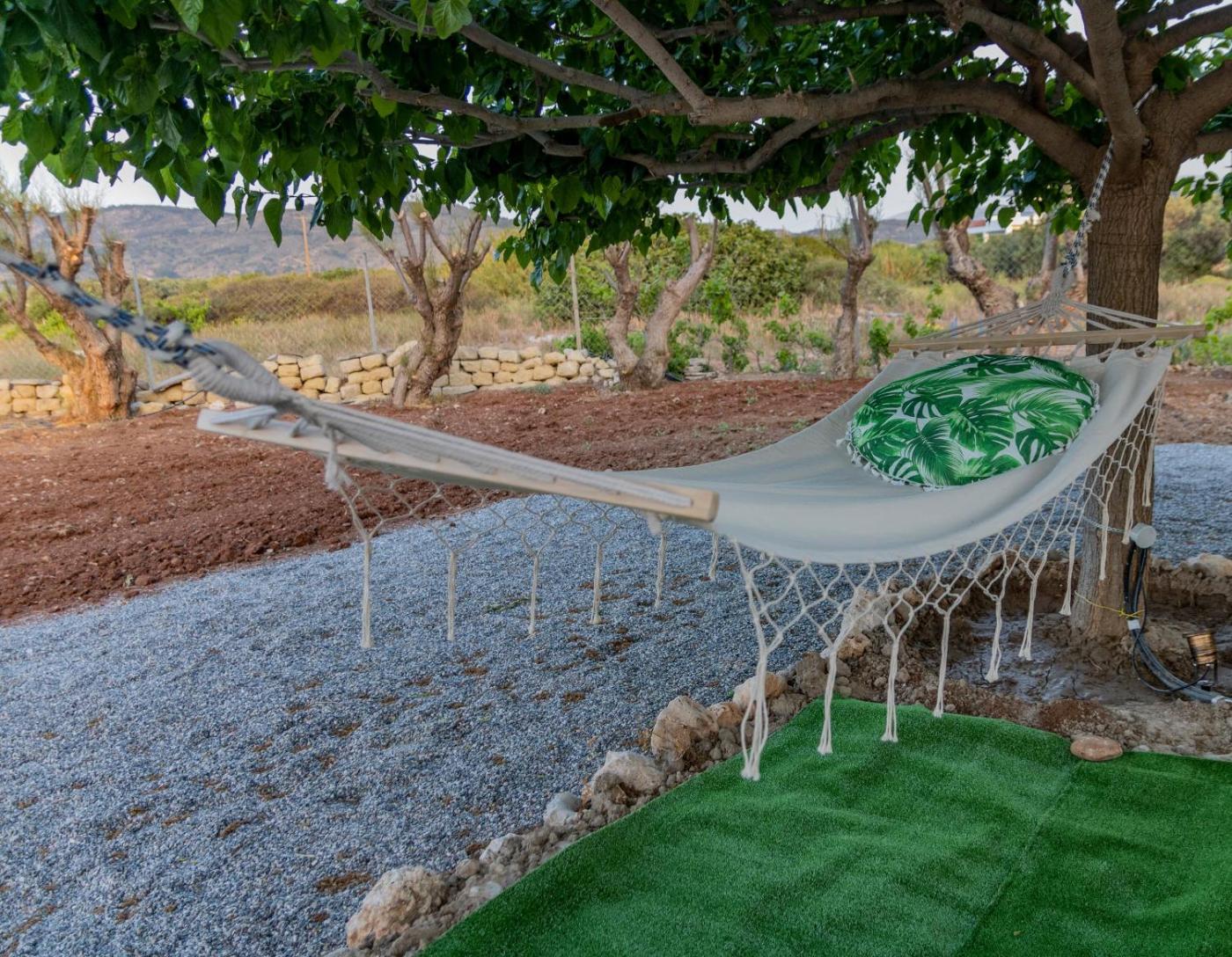 Two-Bedroom House. This holiday homes special feature is the hot tub. Featuring a private entrance, this air-conditioned holiday home comprises 1 living room, 2 separate bedrooms and 1 bathroom with a shower and a hairdryer. Guests will find a stovetop, a refrigerator, an oven and a tea and coffee maker in the well-equipped kitchen. The holiday home also provides guests with a barbecue. Boasting a terrace with garden views, this holiday home also provides a washing machine and a flat-screen TV with streaming services. The unit offers 3 beds.