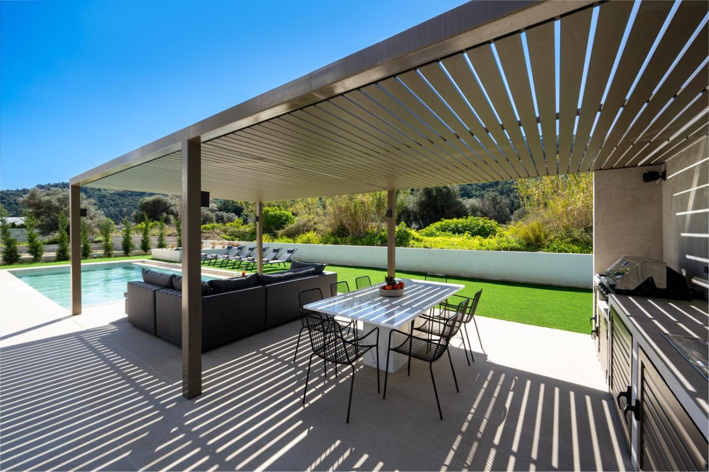 The villa has 4 bedrooms, a flat-screen TV, a fully equipped kitchen with a dishwasher and an oven, a washing machine, and 3 bathrooms with a bath. Guests can enjoy a meal on an outdoor dining area while overlooking the mountain views. The property offers pool views.