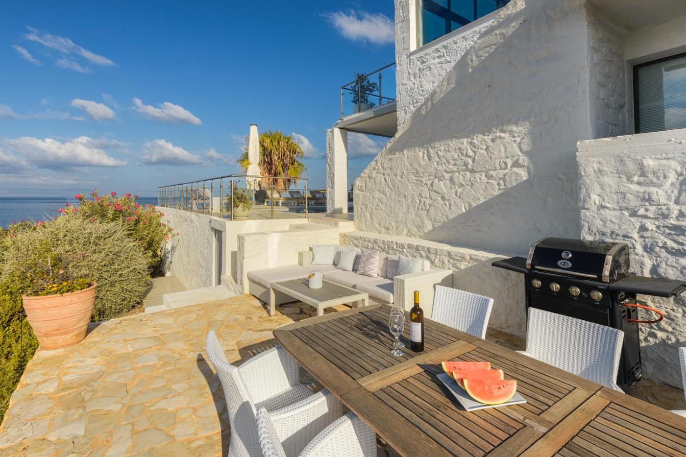 Villa with Sea View. The pool with a view is the standout feature of this villa. Boasting a private entrance, this air-conditioned villa comes with 1 living room, 3 separate bedrooms and 3 bathrooms with a walk-in shower and a bath. Guests will find a stovetop, a refrigerator, a dishwasher and kitchenware in the well-equipped kitchen. The villa also includes a barbecue. Featuring a terrace with sea views, this villa also features a washing machine and a flat-screen TV with streaming services. The unit has 5 beds.