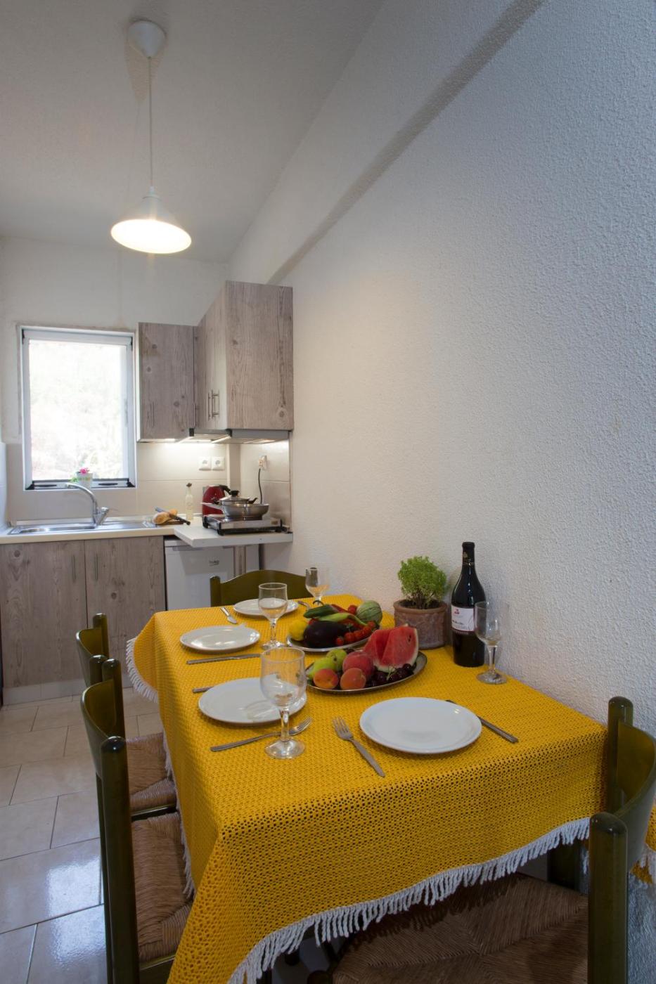 Spathies apartments are bright and simply furnished. They include a kitchenette with dining table and a spacious living area with TV.units open out to a balcony enjoying garden views.