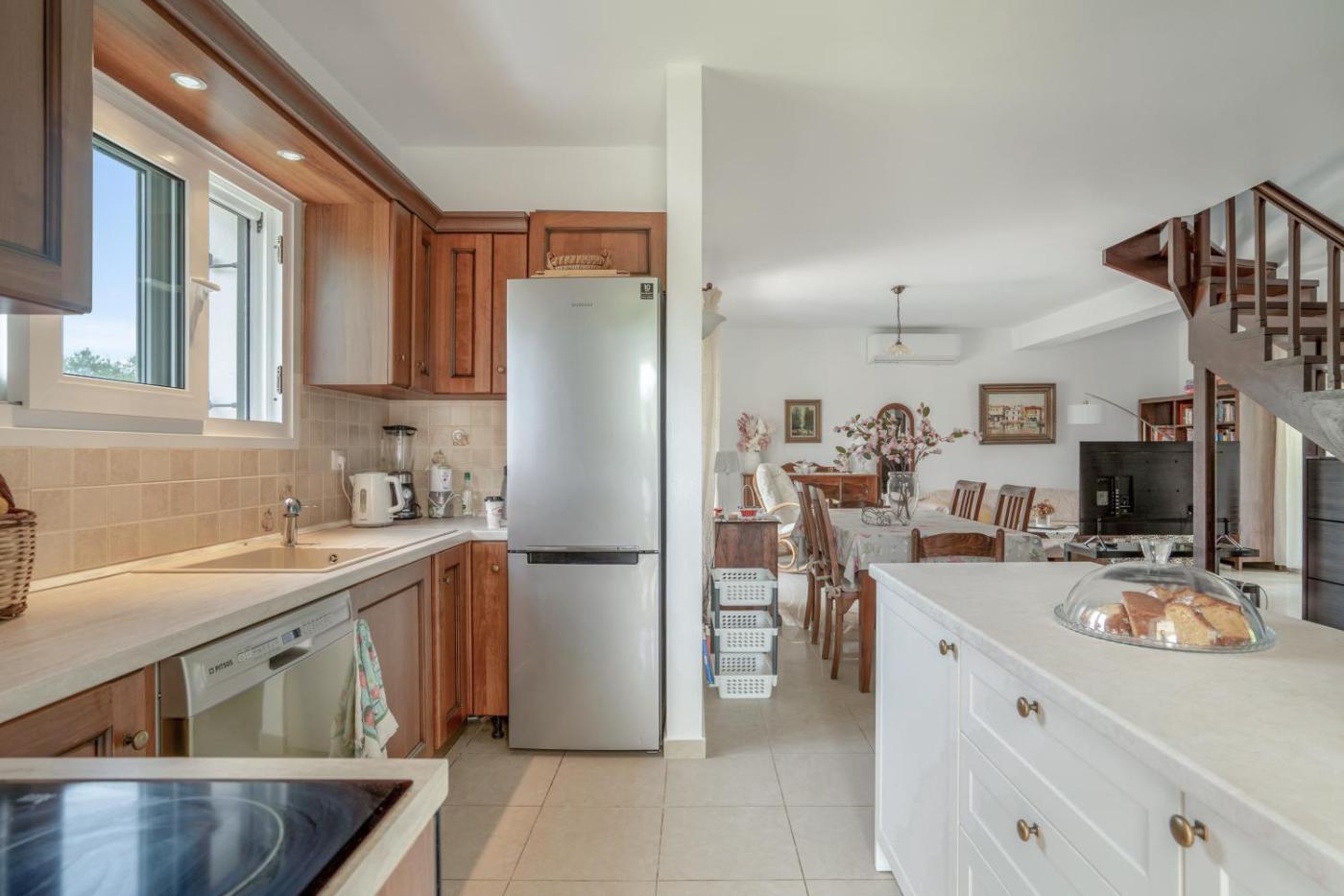 Three-Bedroom House. This holiday homes standout feature is the fireplace. Boasting a private entrance, this air-conditioned holiday home includes a kitchen, 3 bedrooms and 2 bathrooms with a shower and a hairdryer. Guests will find a dishwasher, kitchenware, an oven and a toaster in the fully equipped kitchen. The holiday home also features a barbecue. Featuring a terrace with sea views, this holiday home also offers a washing machine and a TV with streaming services. The unit has 3 beds.