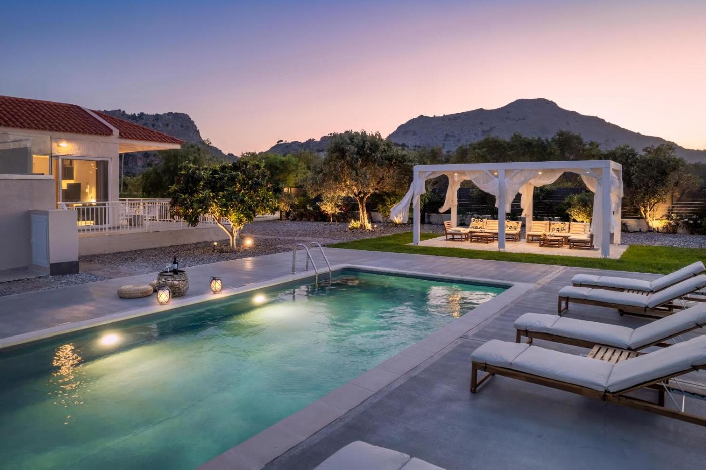 Featuring air-conditioned accommodation with a private pool, pool view and a patio, Eternity Villa Kolympia is located in Kolimbia. This property offers access to a balcony, table tennis, free private parking and free WiFi. The property is non-smoking and is1.1 km from Kolymbia Beach.