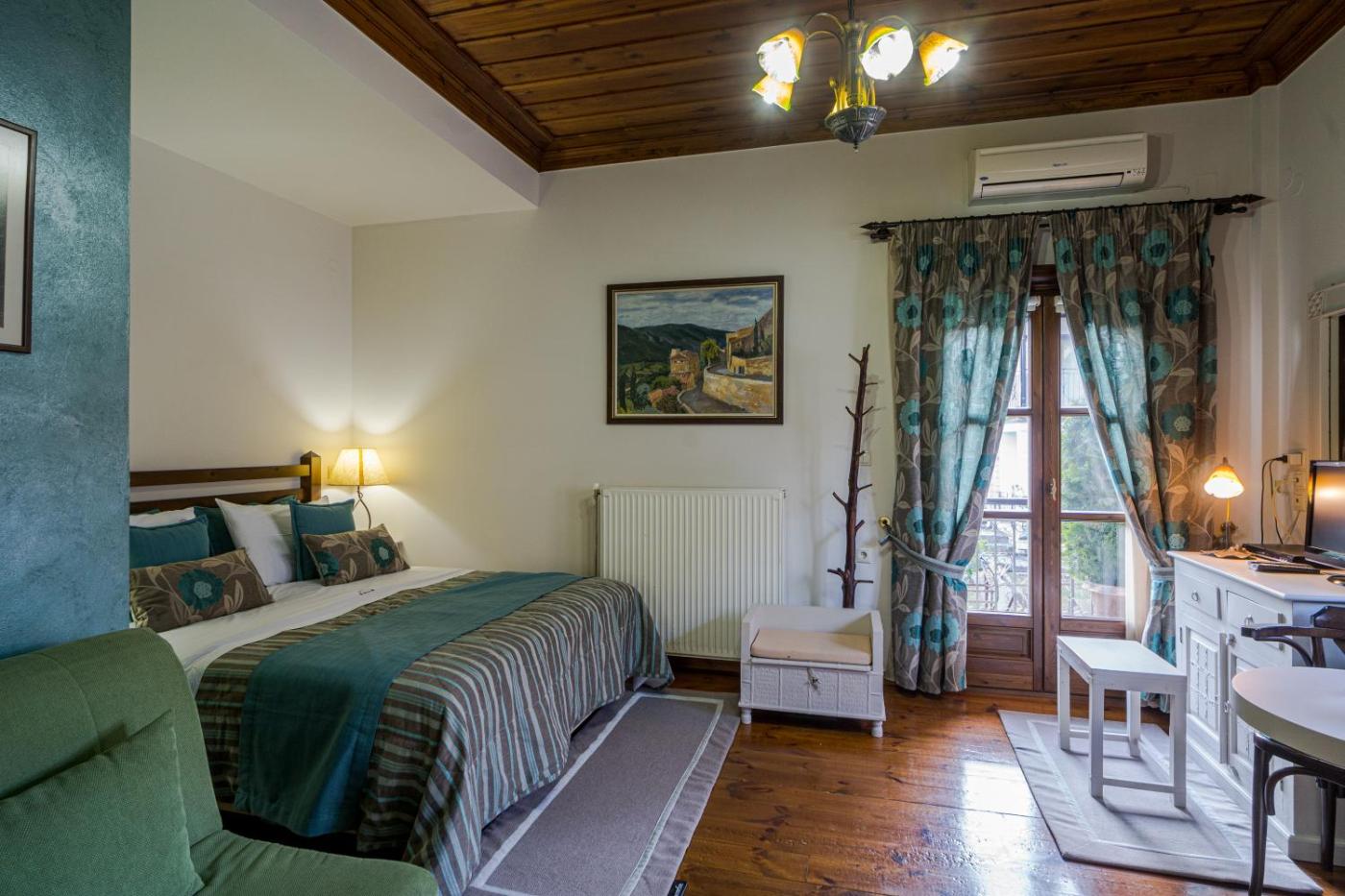 Deluxe Double or Twin Room with Mountain View. Warmly decorated apartment enjoying views of Velouchi, Kaliakouda and Chelidona Mountains from its balcony. It has a fireplace, kitchenette and seating area, and offers: -free Wi-Fi -satellite LCD TV -DVDCD player -air conditioning -minibar -refrigerator -bathrobes and slippers -hairdryer. ;
