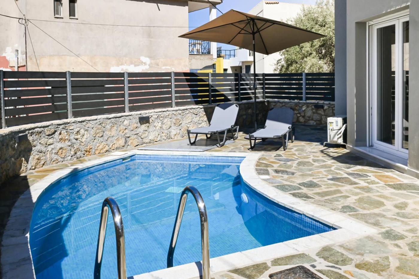 Two-Bedroom Apartment with Private Pool. The pool with a view is a top feature of this apartment. Boasting a private entrance, this air-conditioned apartment comes with 1 living room, 2 separate bedrooms and 2 bathrooms with a shower and a hairdryer. In the well-fitted kitchen, guests will find a stovetop, a refrigerator, a dishwasher and kitchenware. The spacious apartment features a washing machine, soundproof walls, a tea and coffee maker as well as a terrace with sea views. The unit has 3 beds.