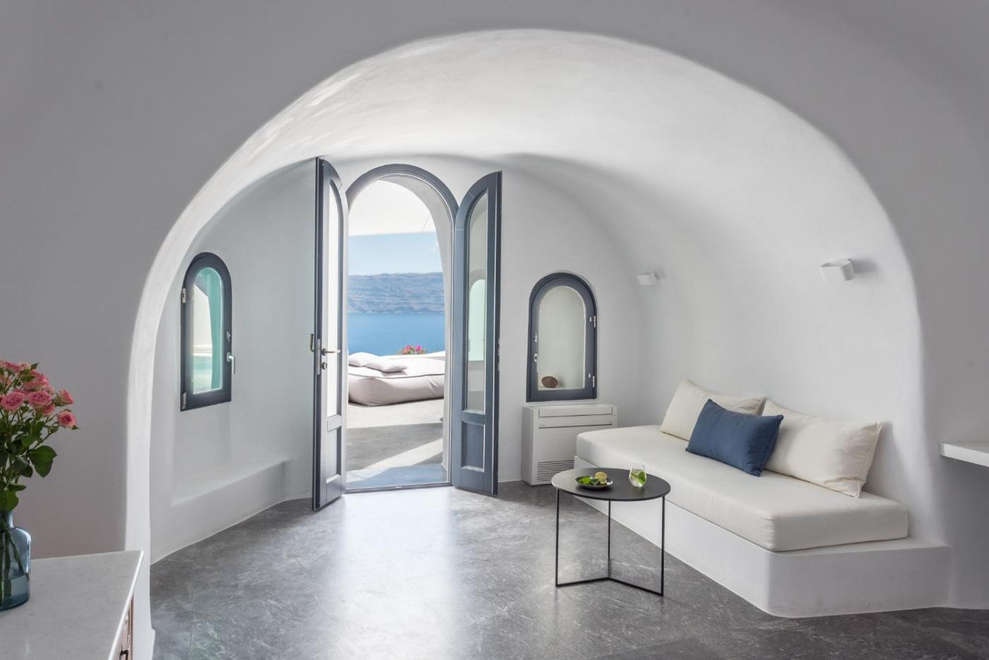 Swallows Nest Suite with Plunge Pool and Caldera View. Set on the edge of the cliff, this suite offers magnificent views to the Caldera. It also comes with a private plunge pool stretching from the terrace rightthe living room.