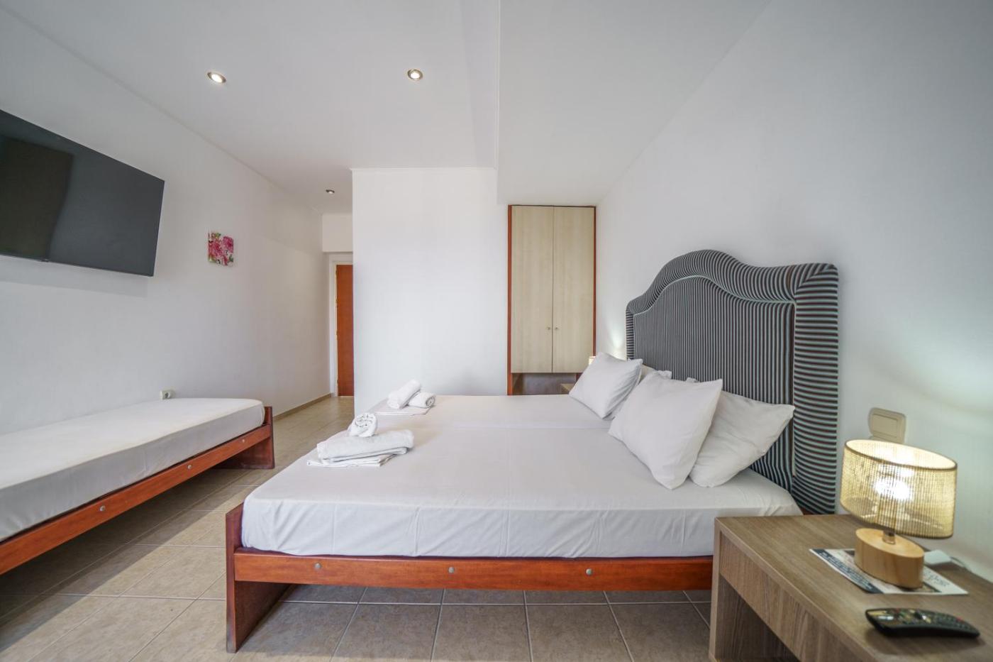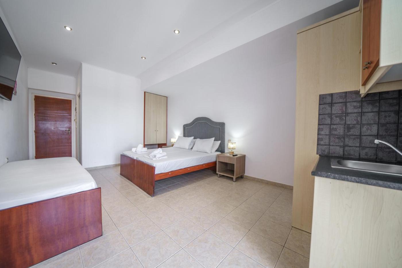 At the hotel, each room is fitted with a wardrobe. Complete with a private bathroom equipped with a shower and a hairdryer, guest rooms at Manias Seaview Apartments have a flat-screen TV and air conditioning, and selected rooms are equipped with a balcony. The rooms will provide guests with a fridge.