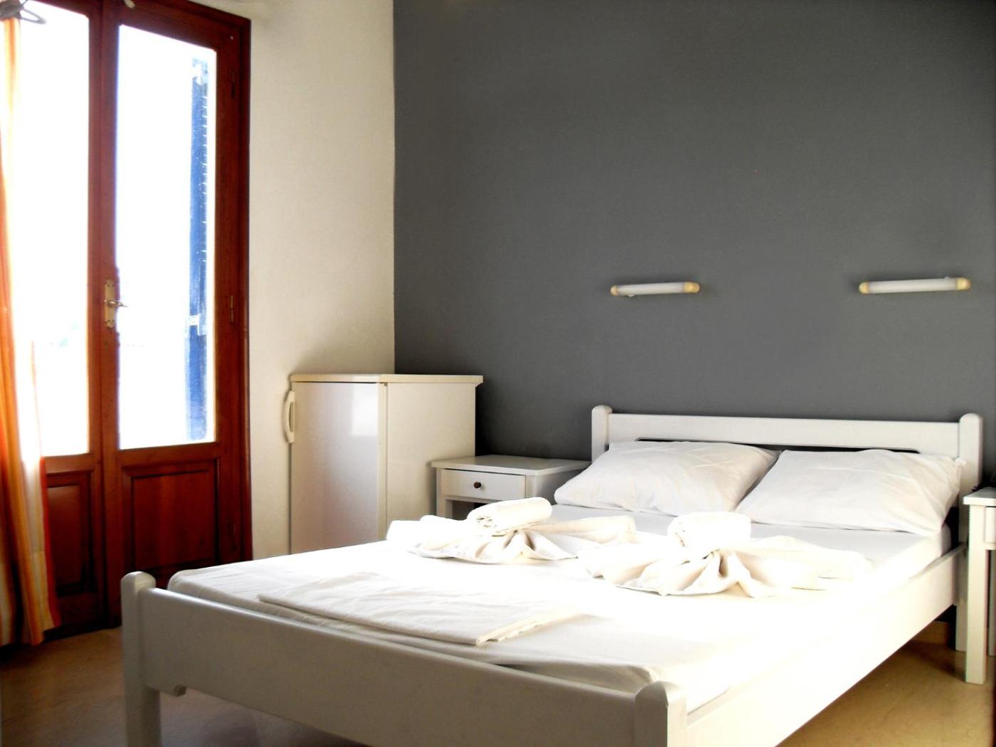 Small Double Room with Balcony. Simple and functional room with white walls and wooden furniture. Amenities include a refrigerator, air conditioning, digital TV, hairdryer, safebox, shower and balcony.