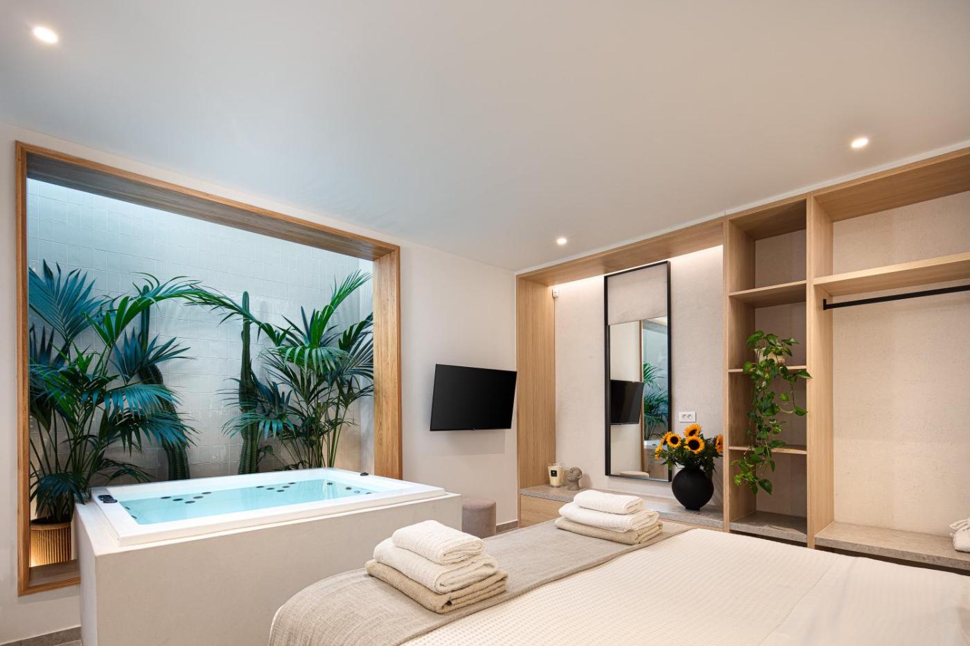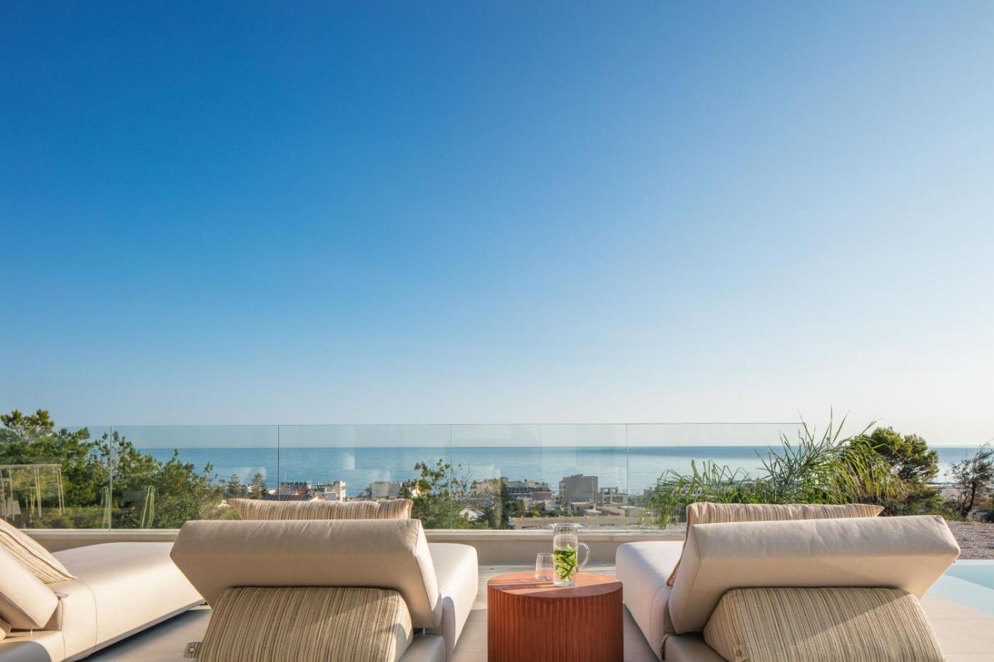 Deluxe Villa. This luxurious villa provides a pool with a view, a hot tub and a fireplace. This spacious villa comes with 1 living room, 5 separate bedrooms and 5 bathrooms with a shower and free toiletries. Guests will find a stovetop, a refrigerator, a dishwasher and kitchenware in the well-fitted kitchen. The villa also includes a barbecue. The air-conditioned villa features a flat-screen TV with streaming services, a washing machine, a private entrance, soundproof walls as well as sea views. The unit has 9 beds.
