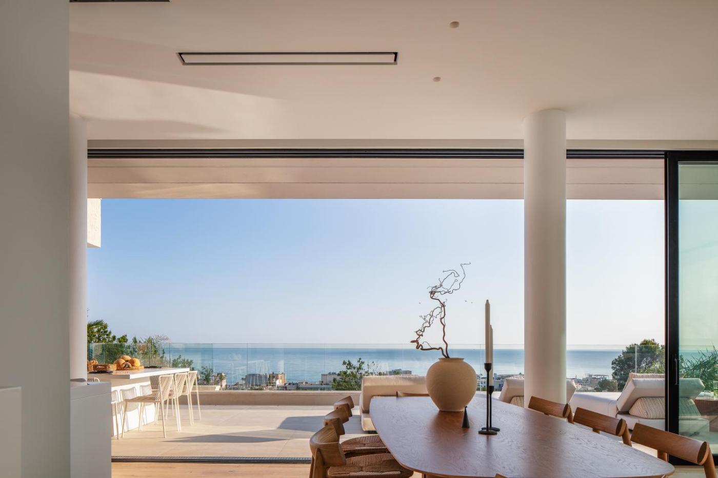 The spacious villa has 5 bedrooms, 5 bathrooms, bed linen, towels, a flat-screen TV with streaming services, a dining area, a fully equipped kitchen, and a terrace with sea views. The comfortable, air-conditioned accommodation also comes with soundproofing and a fireplace. The property has an outdoor dining area.