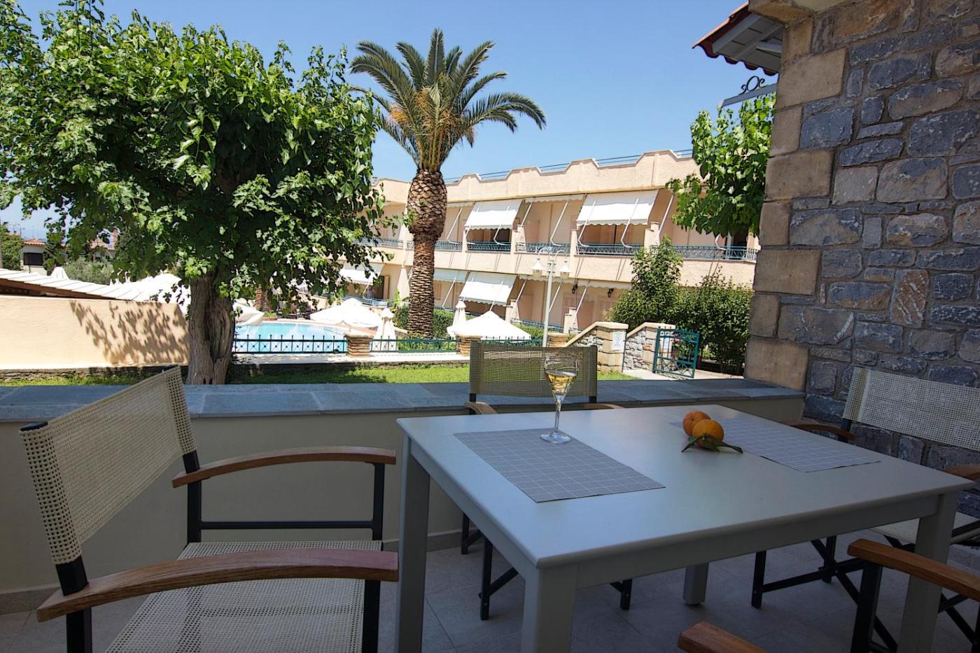 Studio with Pool View. The fully equipped kitchenette features a stovetop, a refrigerator, kitchenware and a toaster. This air-conditioned studio includes a flat-screen TV with satellite channels, a private bathroom as well as a terrace with garden views. The unit offers 2 beds. ;