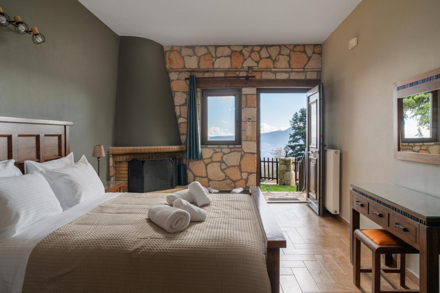 Deluxe Room (2 Adults + 1 Child). This double room offers a fireplace. The double room provides soundproof walls, a tea and coffee maker, as well as a private bathroom featuring a shower and a hairdryer. Boasting a patio, this double room also features a tiled floor, heating and a flat-screen TV. The unit offers 2 beds. ;