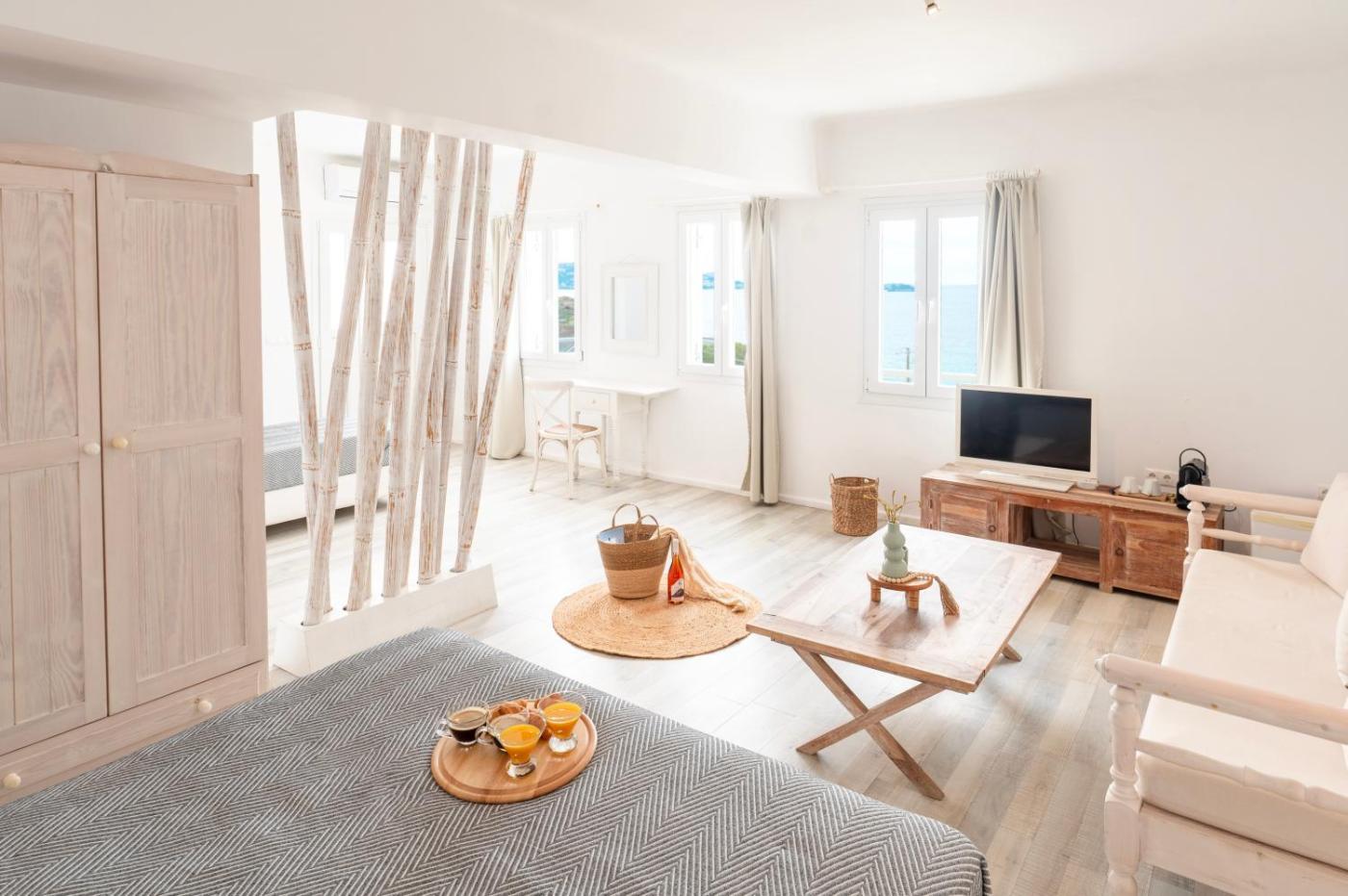 Simply yet elegantly decorated and furnished,rooms at With-inn Mykonos Suites feature a built-in shower. They come with a private balcony while most offer views to the Aegean Sea.