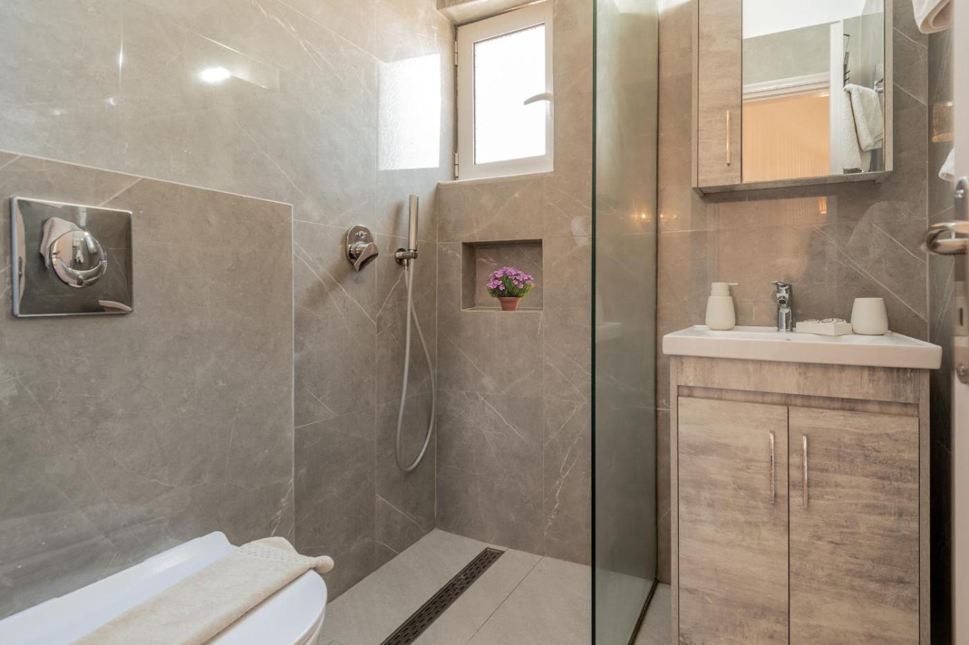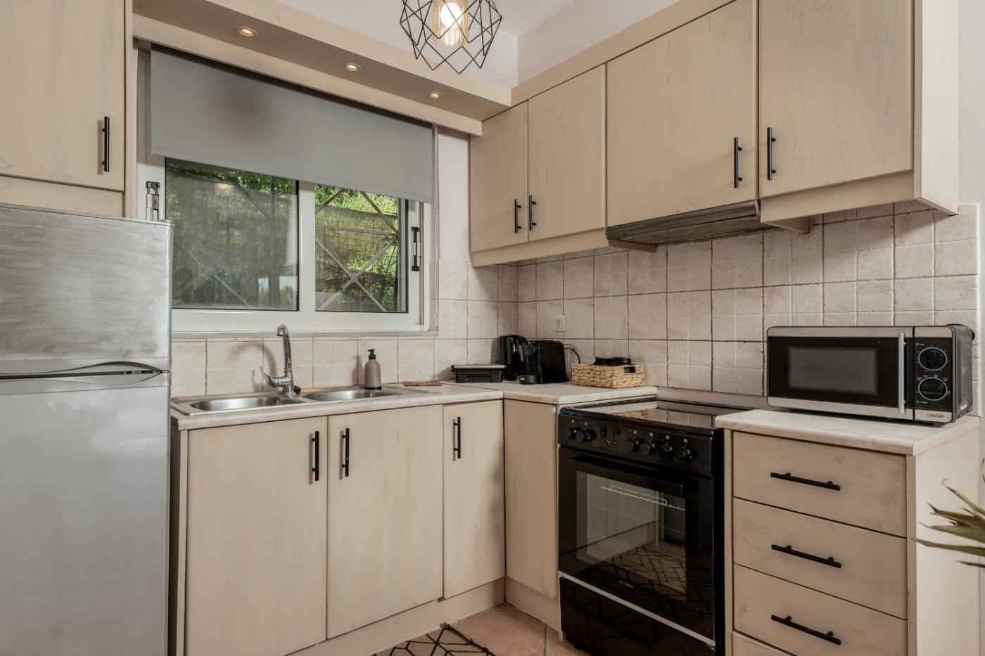 Two-Bedroom House. Opening to a balcony and a patio with Ionian Sea, garden and mountain views, this air-conditioned and split-level holiday home comes with 2 separate bedrooms. It consists of a living room with TV and a kitchen with dining table and oven with hobs. Free WiFi is provided. ;