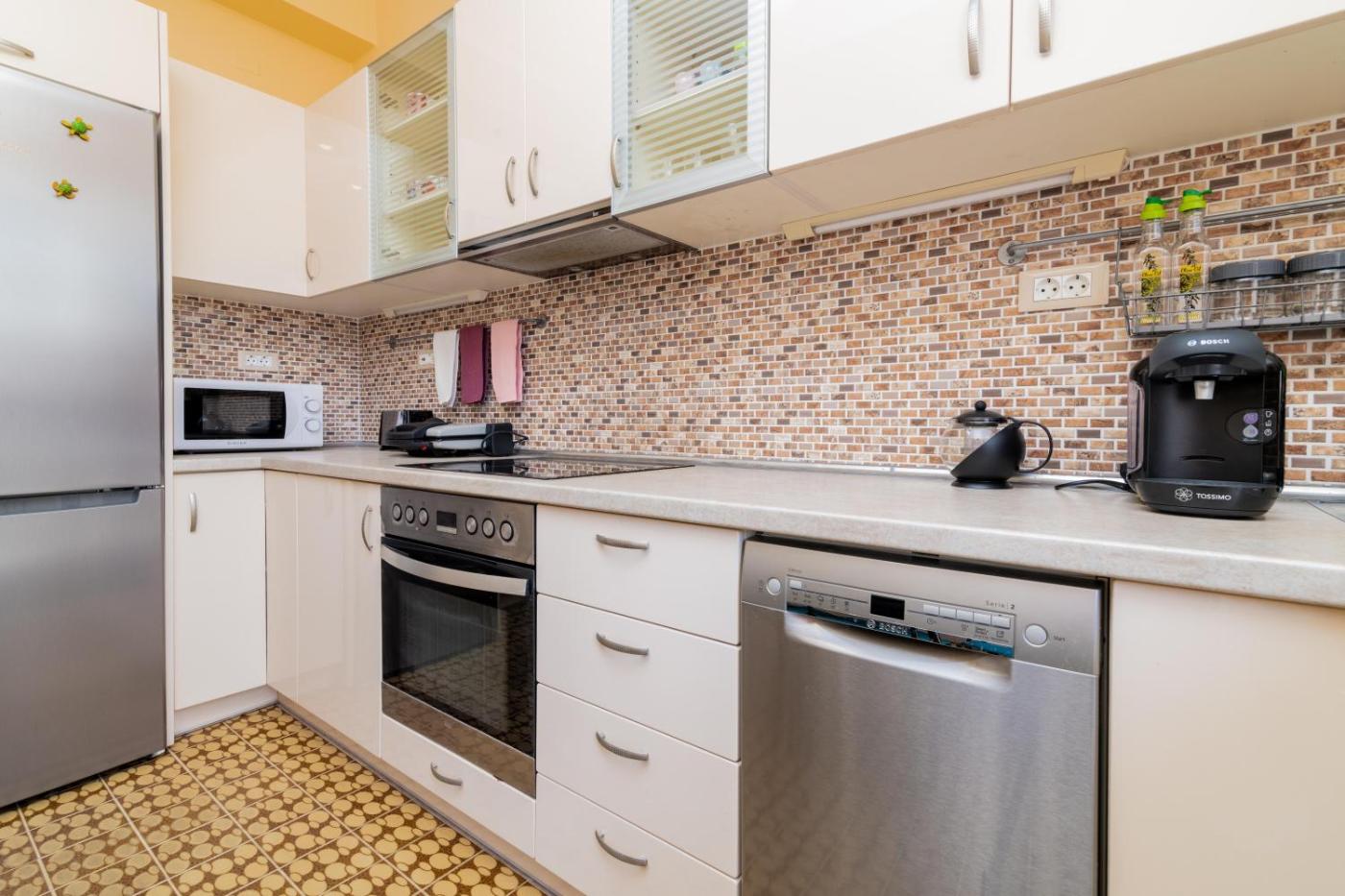 Two-Bedroom Apartment. In the fully equipped kitchen, guests will find a stovetop, a refrigerator, a dishwasher and kitchenware. The spacious apartment features air conditioning, a washing machine, a private entrance, soundproof walls and a flat-screen TV with streaming services. The unit has 4 beds.