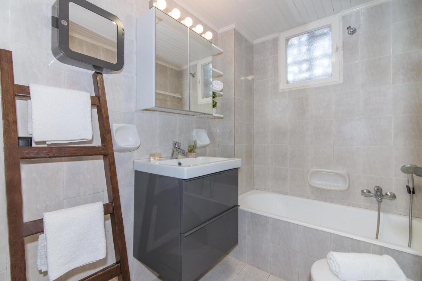 One-Bedroom Apartment. Guests will find a stovetop, a refrigerator, kitchenware and an oven in the kitchen. The apartment also provides guests with a barbecue. The spacious air-conditioned apartment provides a flat-screen TV with streaming services, a washing machine, soundproof walls, a tea and coffee maker as well as garden views. The unit offers 2 beds.